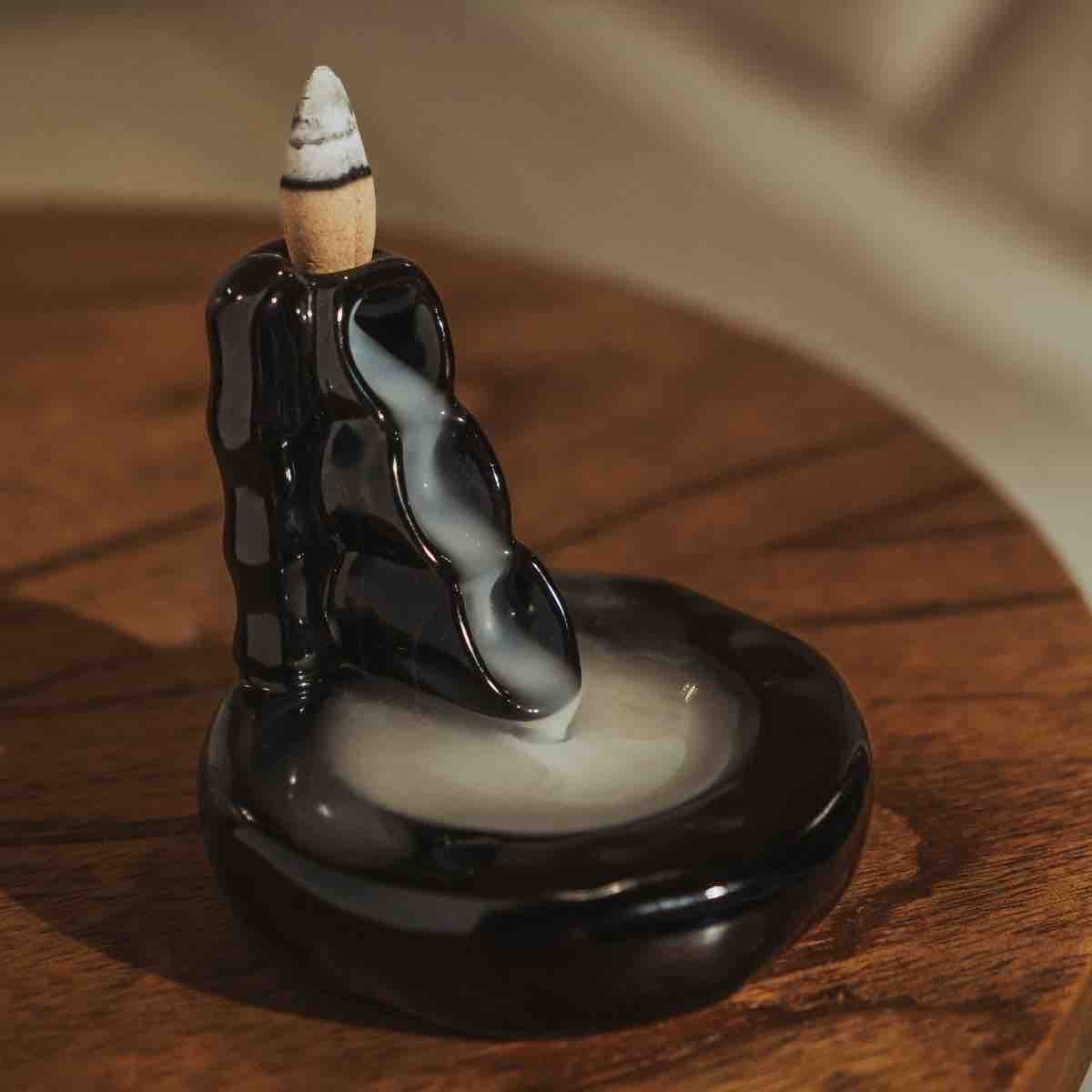 The F?006 Waterfall Smoke Fountain is a backflow incense burner crafted to mimic the serene flow of a cascading waterfall. Place a specially designed cone at the top, and the dense smoke dances downward through layered tiers?creating a tranquil, visual cascade that complements meditation corners, living spaces, or altar d?cor.